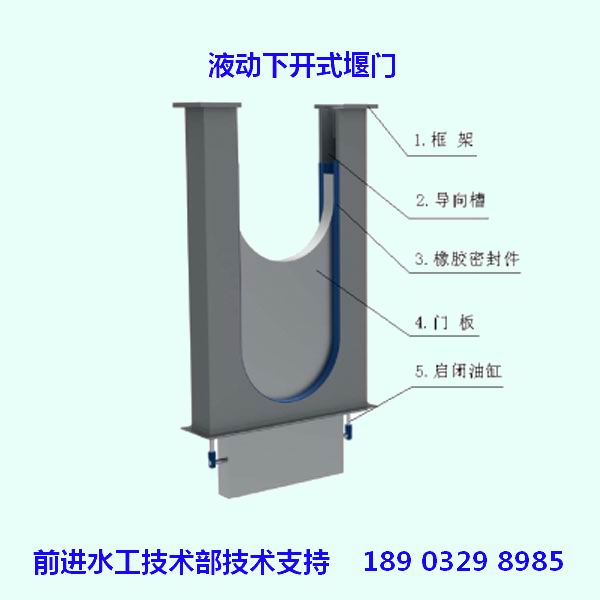 不锈钢下开式堰门用于管道、箱涵或渠道中。可以起到冲洗、防倒灌、调节流量的作用。该设备向下开启,不占用上部空间,故称下开式堰门。